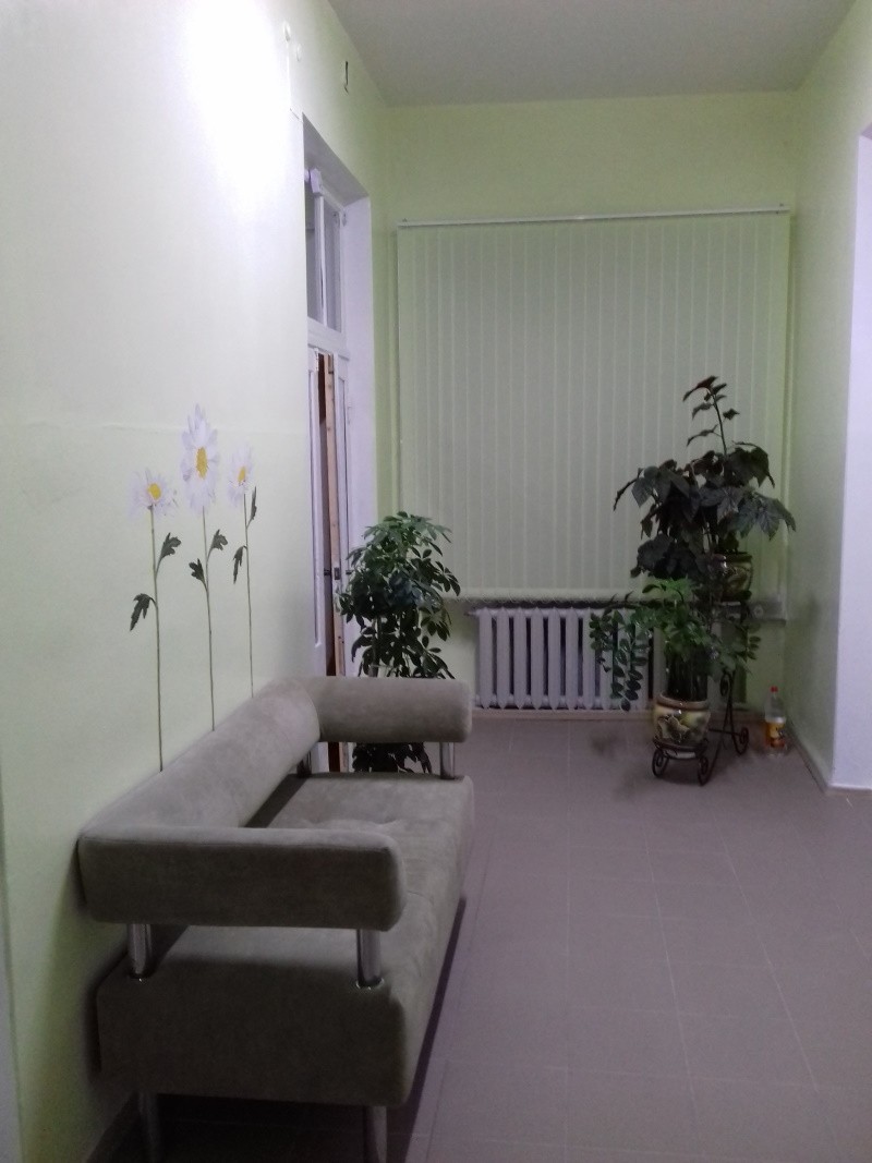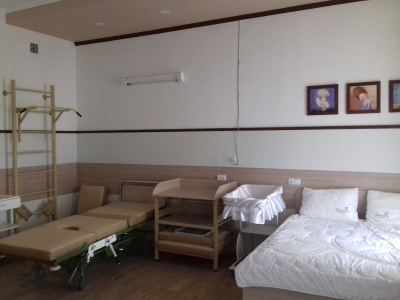 Виділені: санпропускник, виписна кімната. Індивідуальні та сімейні пологові зали обладнані: шведськими стінками, м’ячами, кріслами, стільцями для пологів.